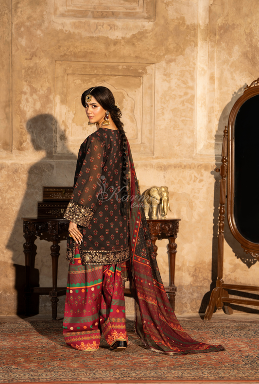 As online shopping gaining popularity and has become a must-have, Karma offers Pakistani chikankari suits online giving you a chance to get timeless Pakistani party wear dresses online. Pakistan prides having numerous clothes brands in Pakistan including Karma as these brands have made their space beyond the boundaries due to modern outfit collections such as maxi dresses which boost your appearance giving you a glamorous touch. Pakistan is renowned for its colorful cultural heritage and Pakistani formal dresses include a sparkling blend of hues and styles and fulfill the needs of vibrant celebrations.