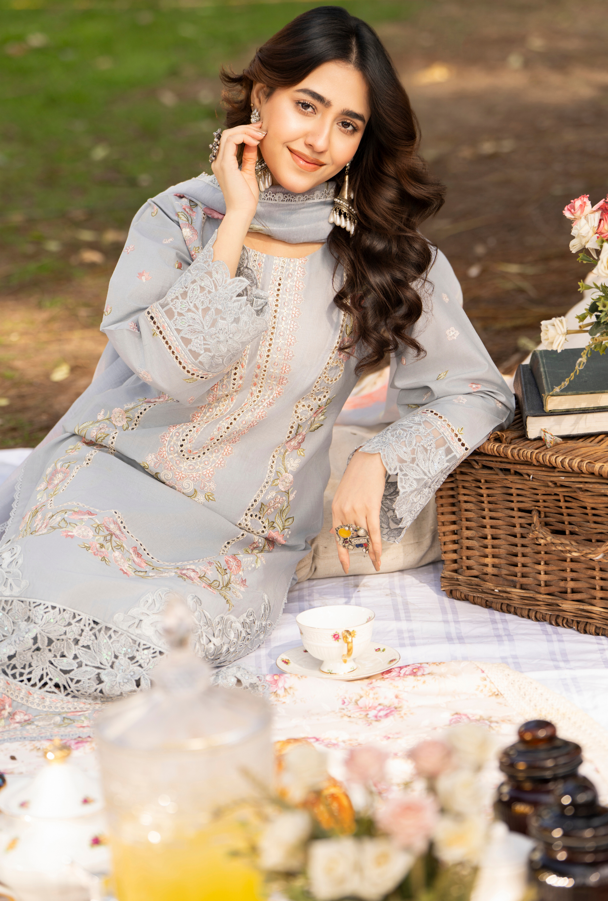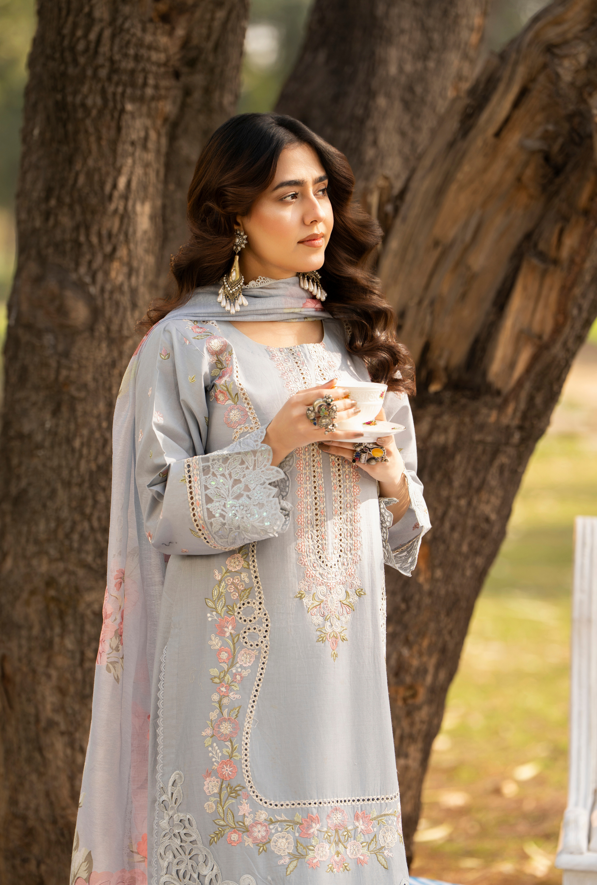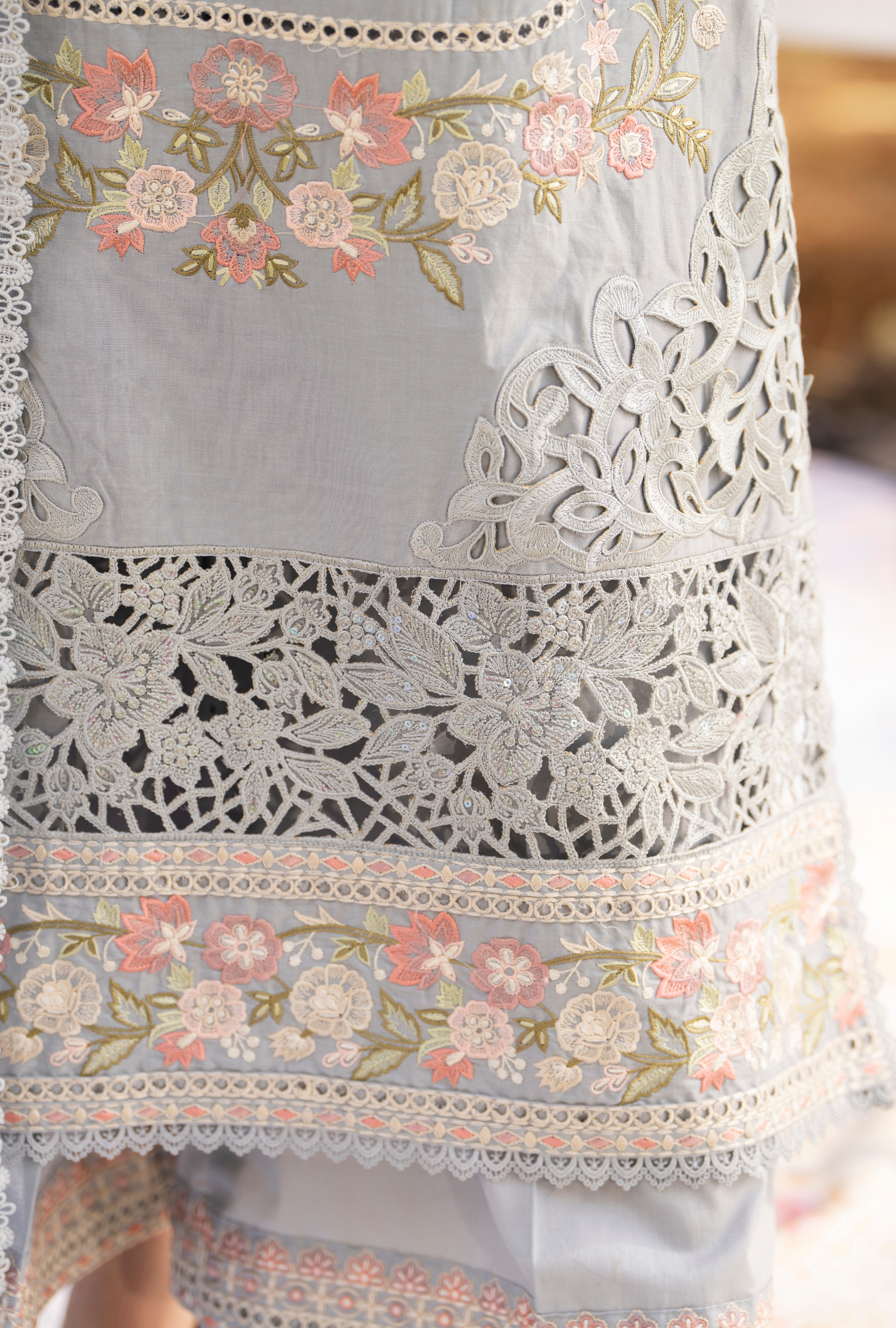 Long Boring Chikankari Shirt with Cut work Patches, Laces and Motives also Patches and
