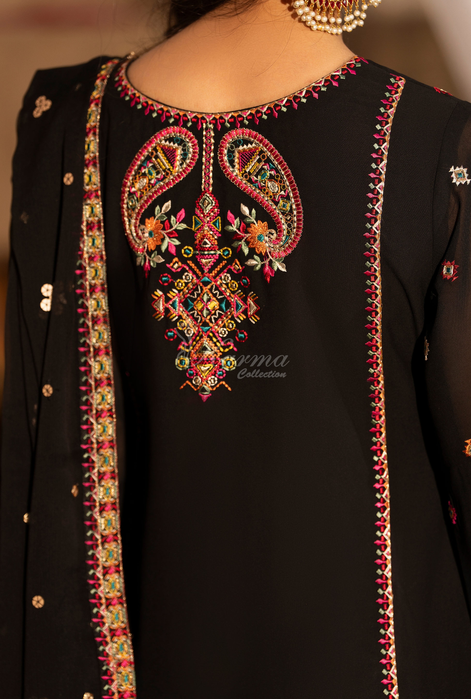 Georgette Chiffon Shirt with Multi Thread Embroidery and Tussel work on