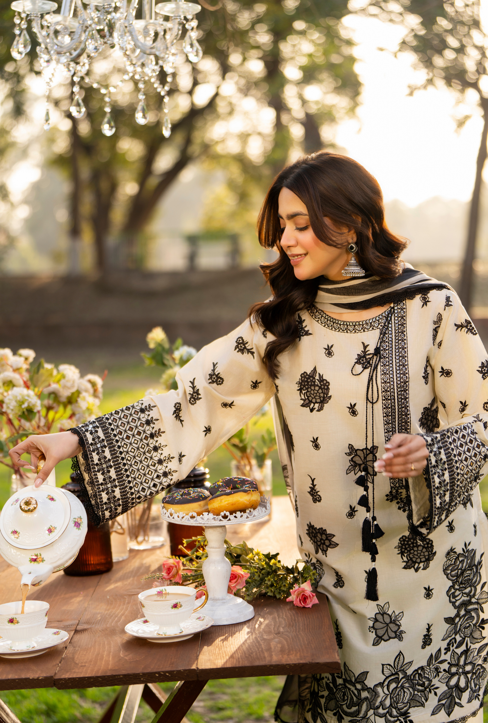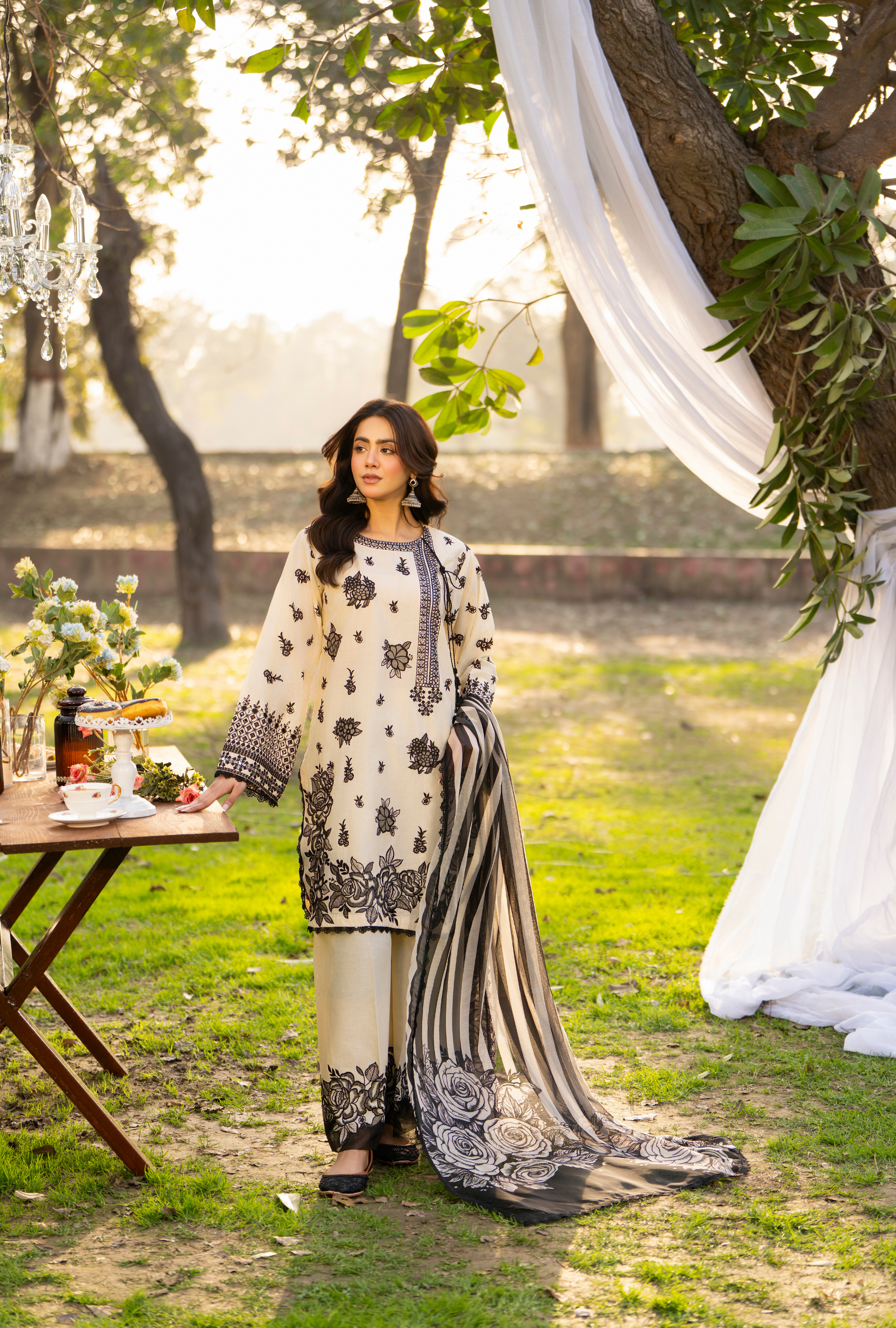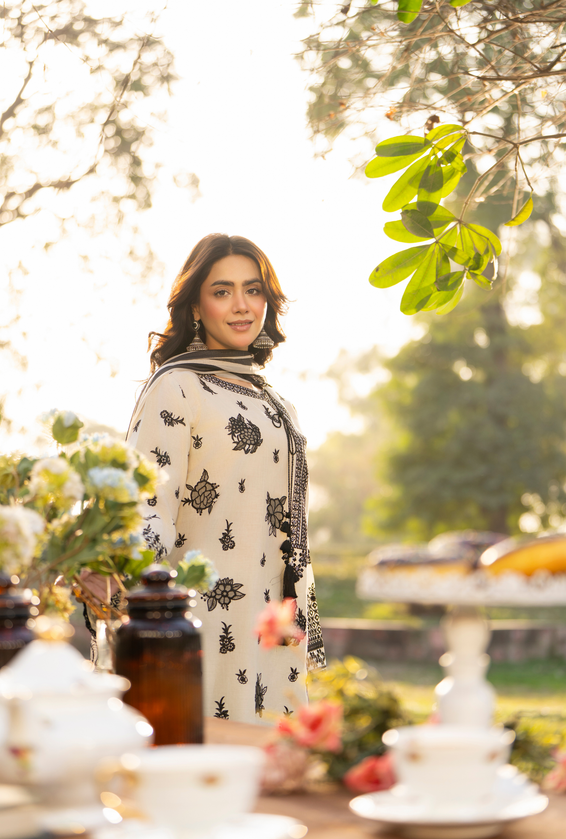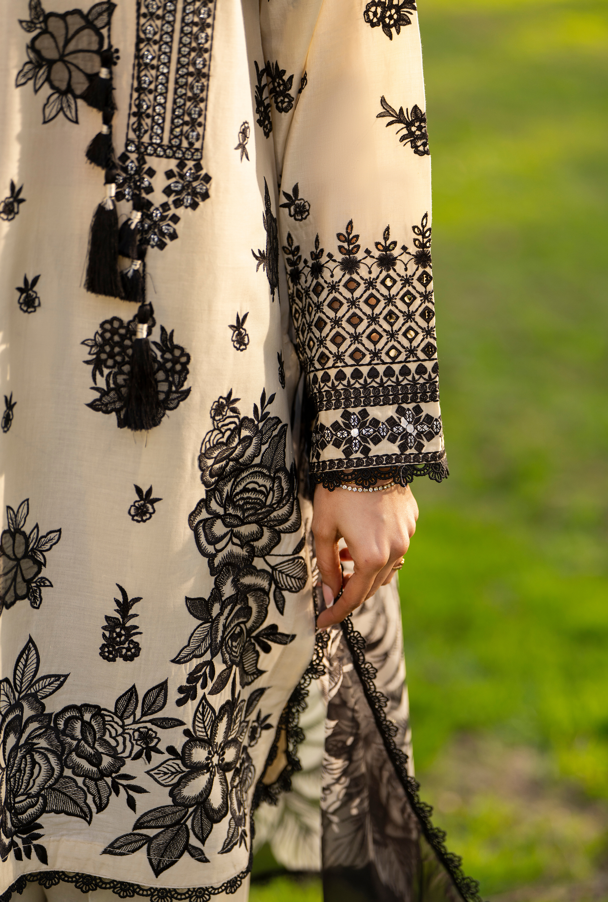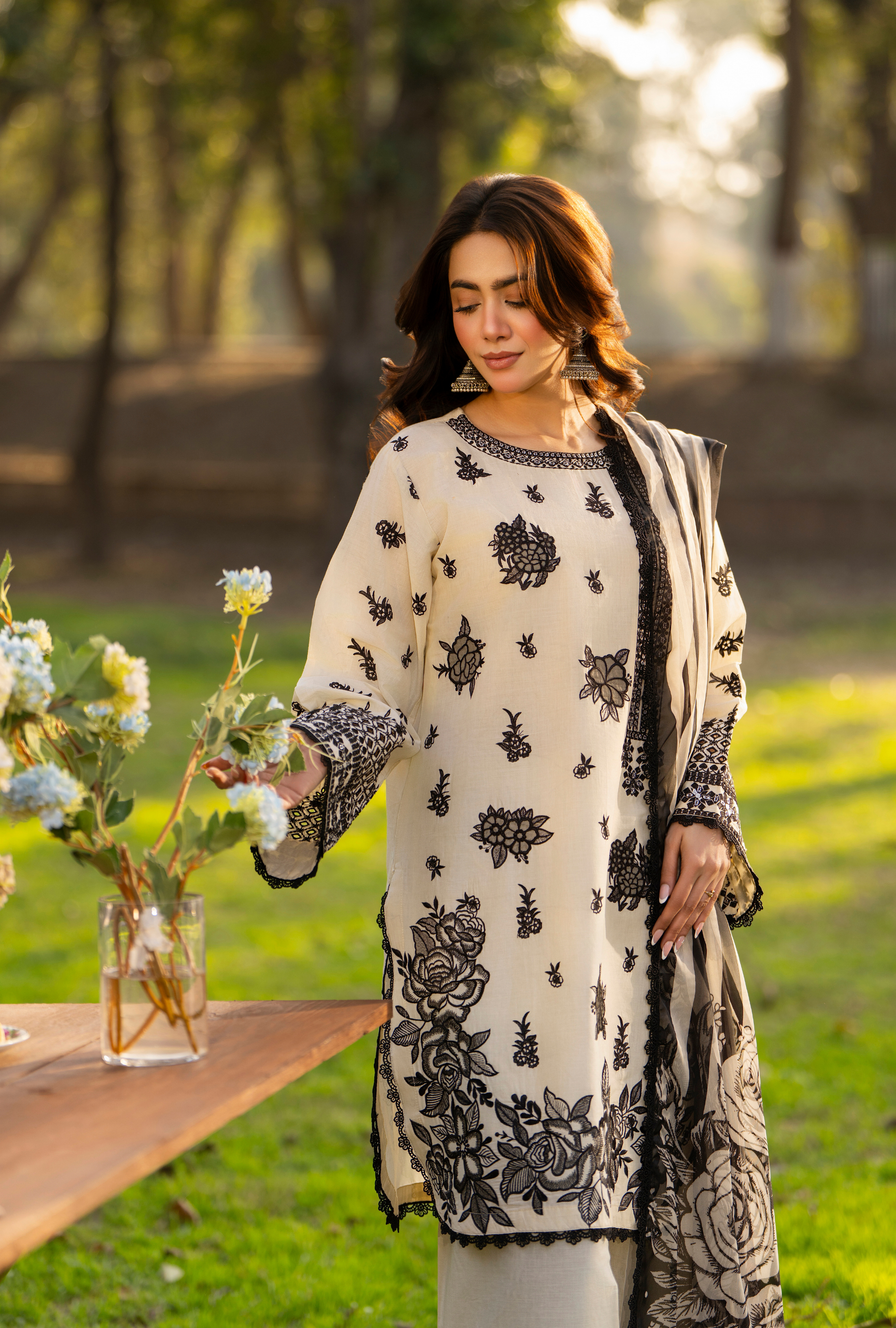Organza Flowers and Chikankari Sleeves