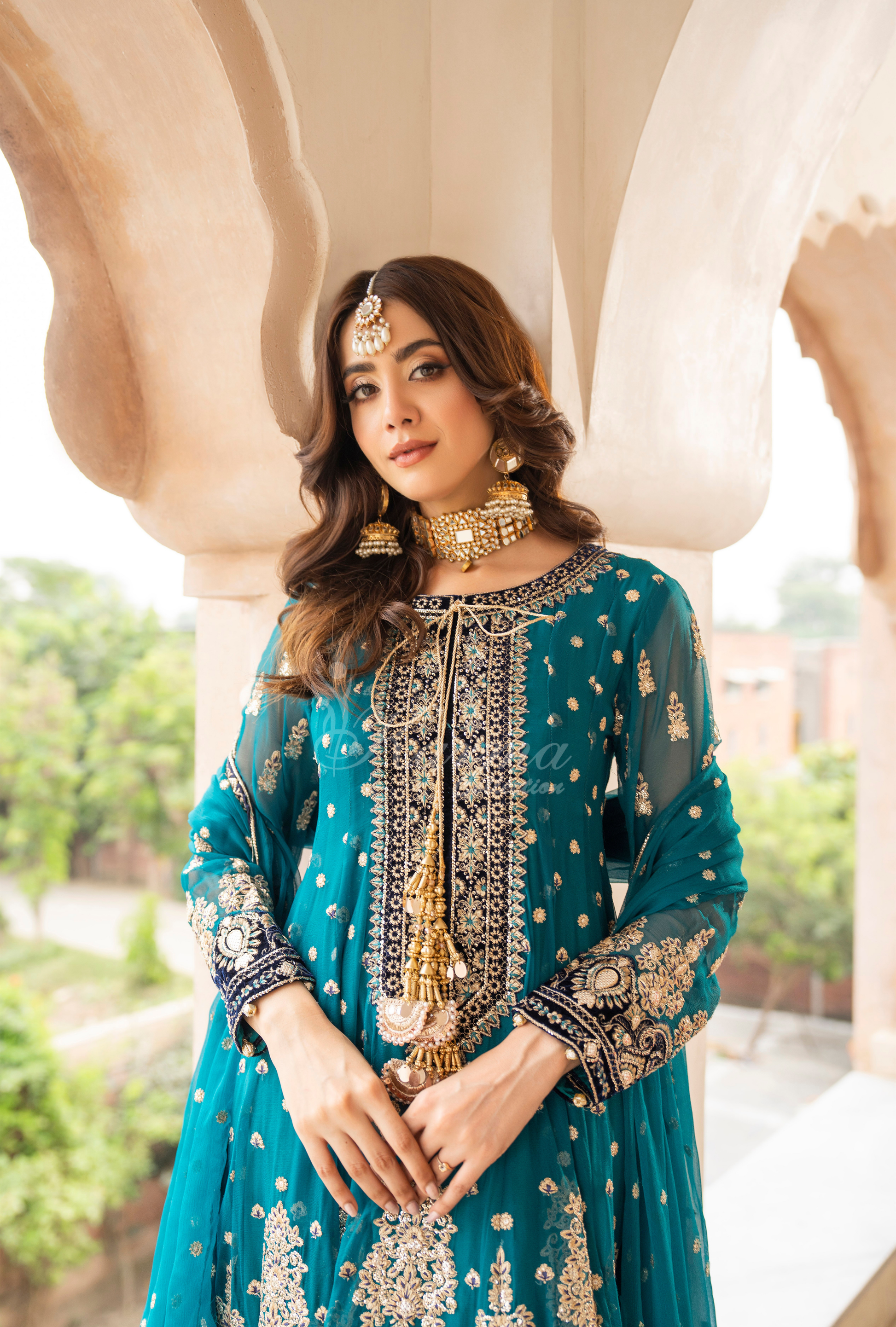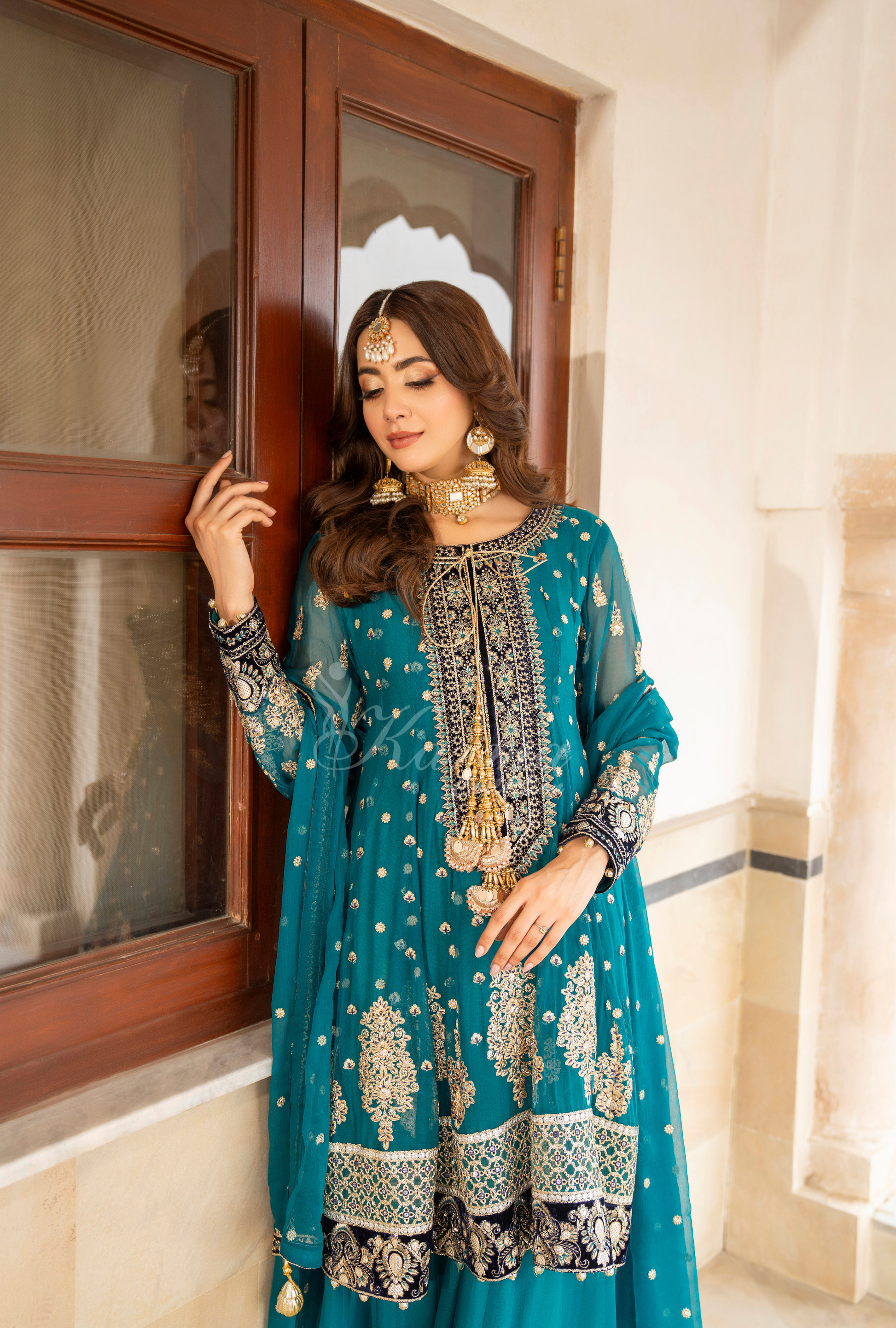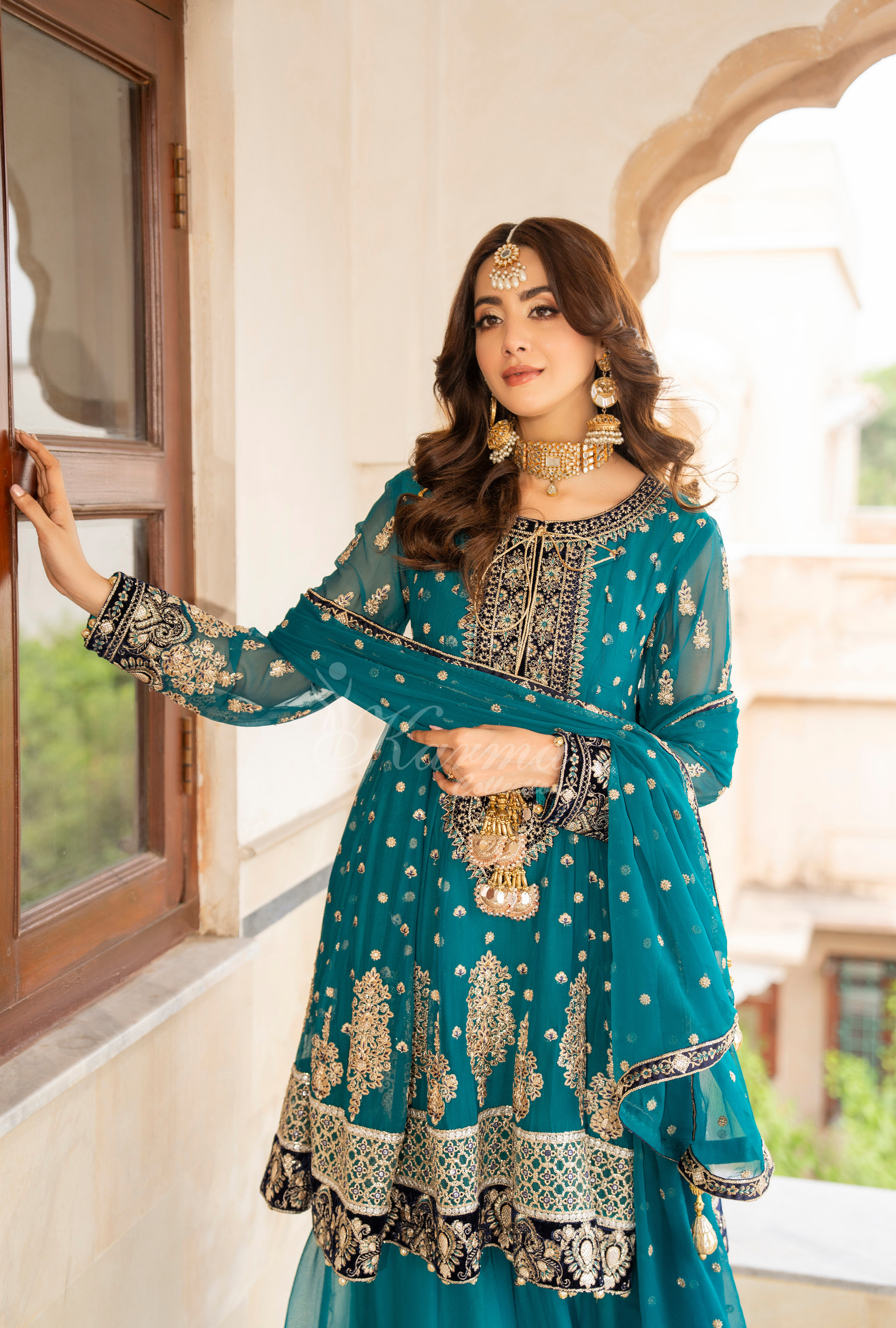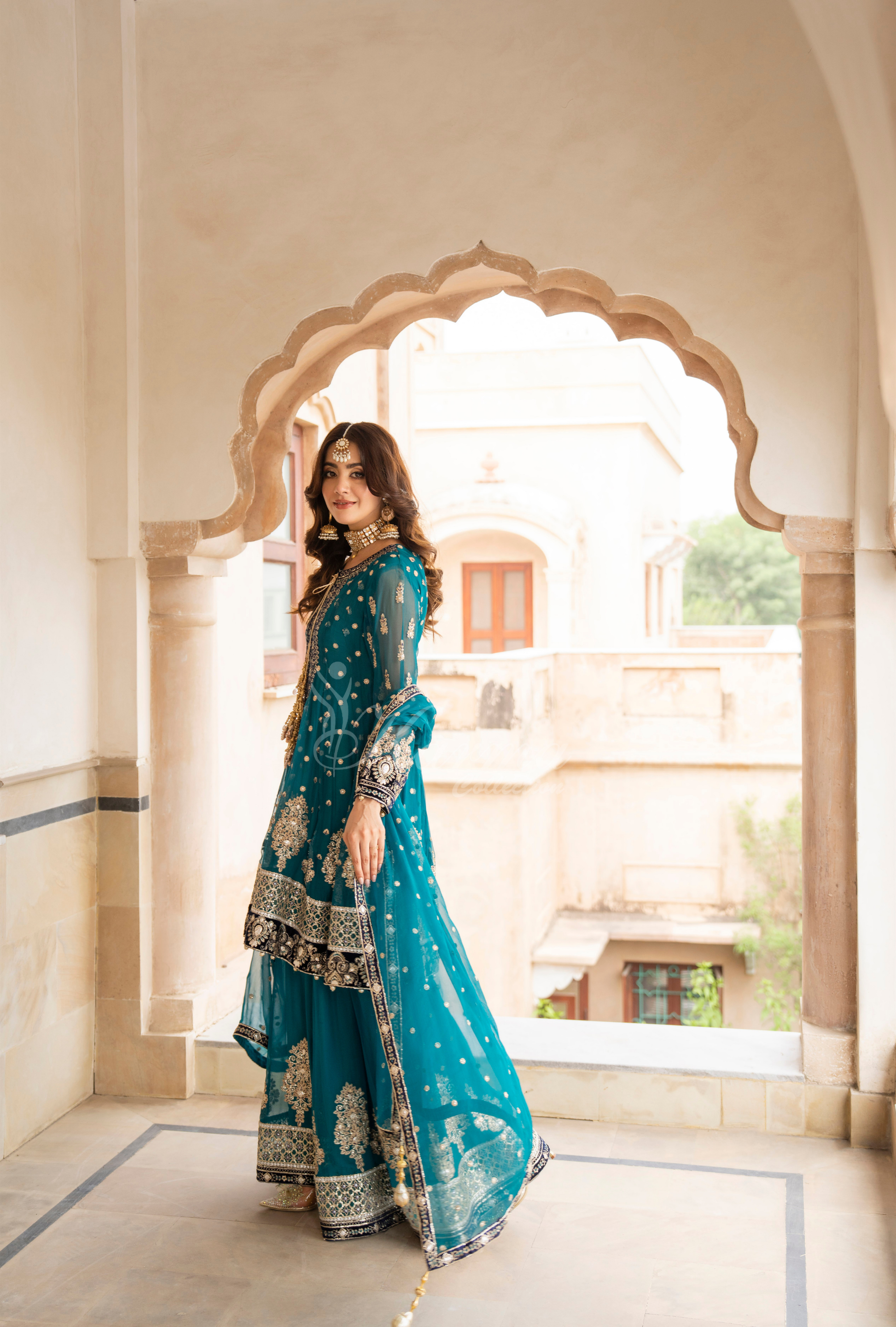 Crinkle Chiffon Kali Frock with Tilla, Panni and Sequence Work and Embroidery and