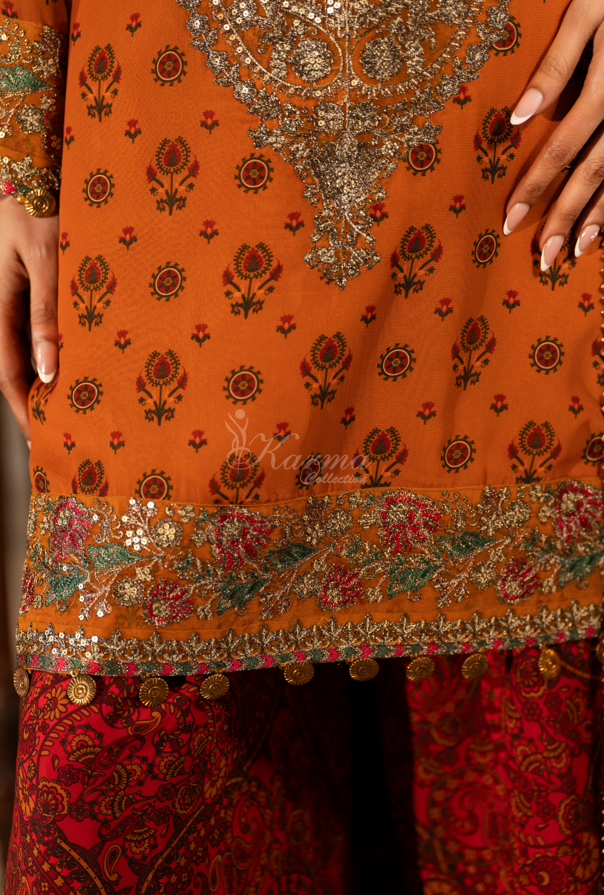 Printed Georgette Shirt with Tilla, Multi Panni and Sequins work with Metal