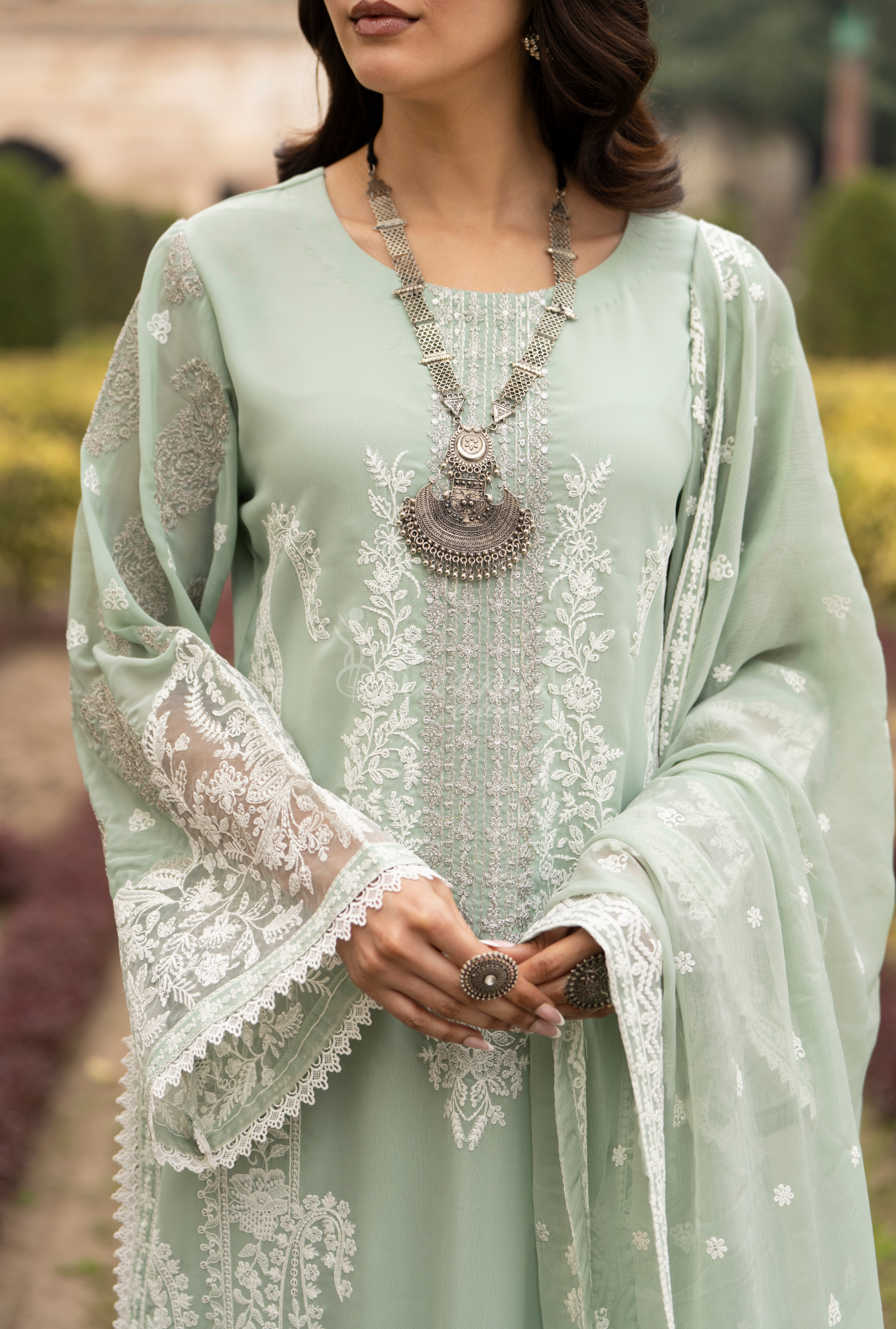 Chiffon Dupatta with all around Embroidery