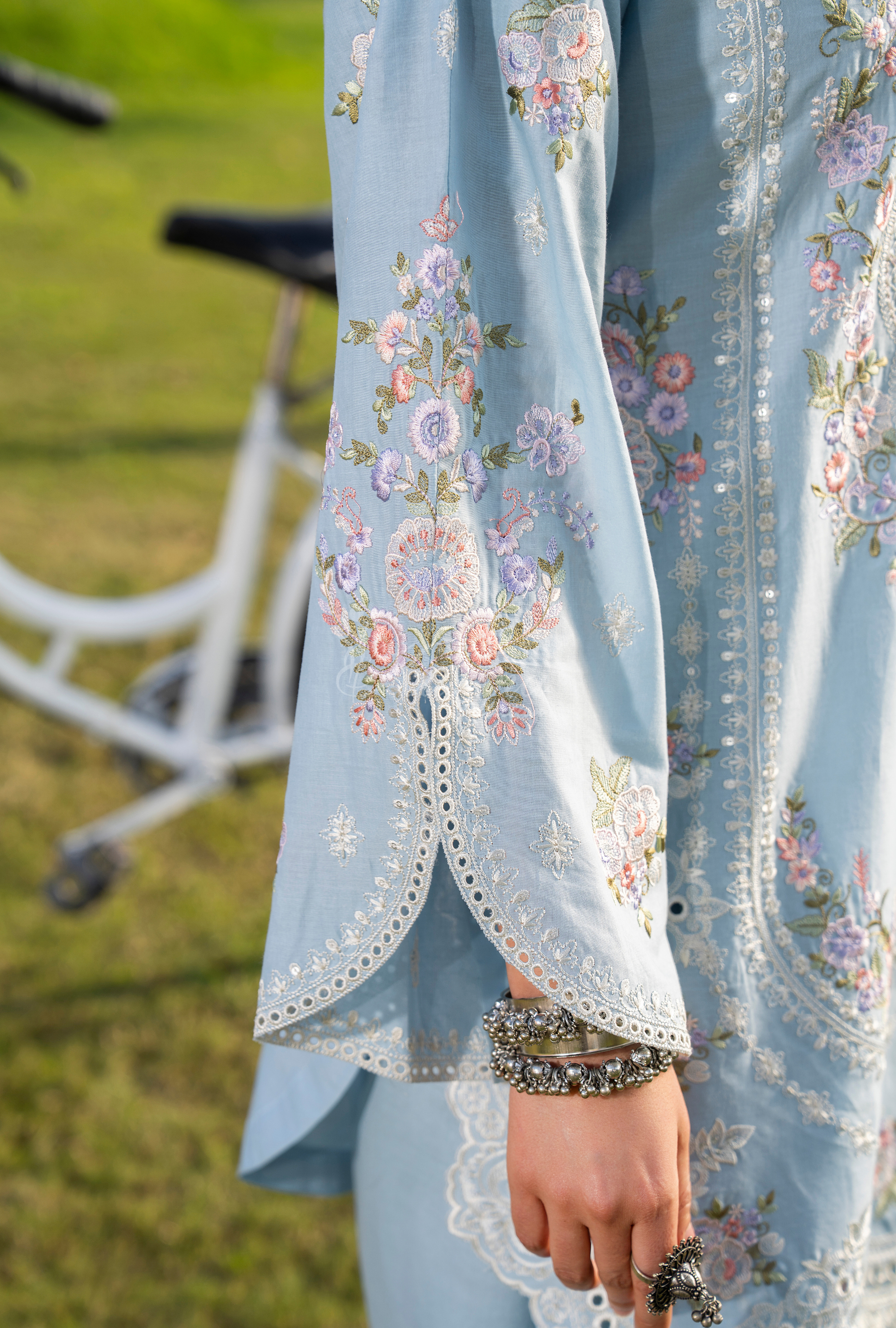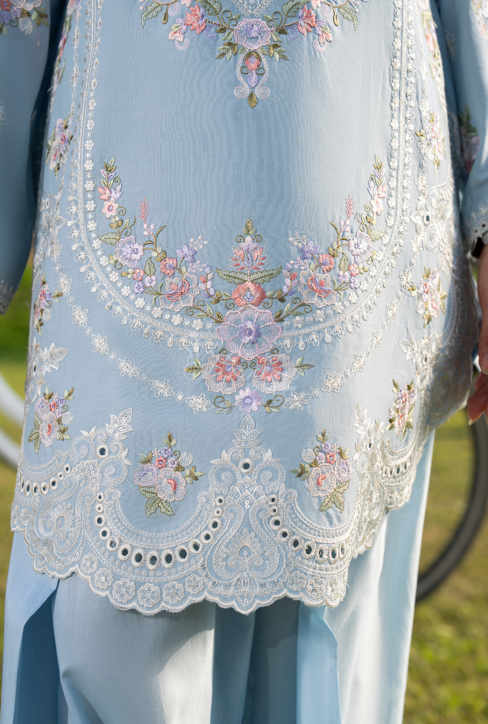 Short Round Border Shirt with Multi Thread work Embroidery and Cut work on