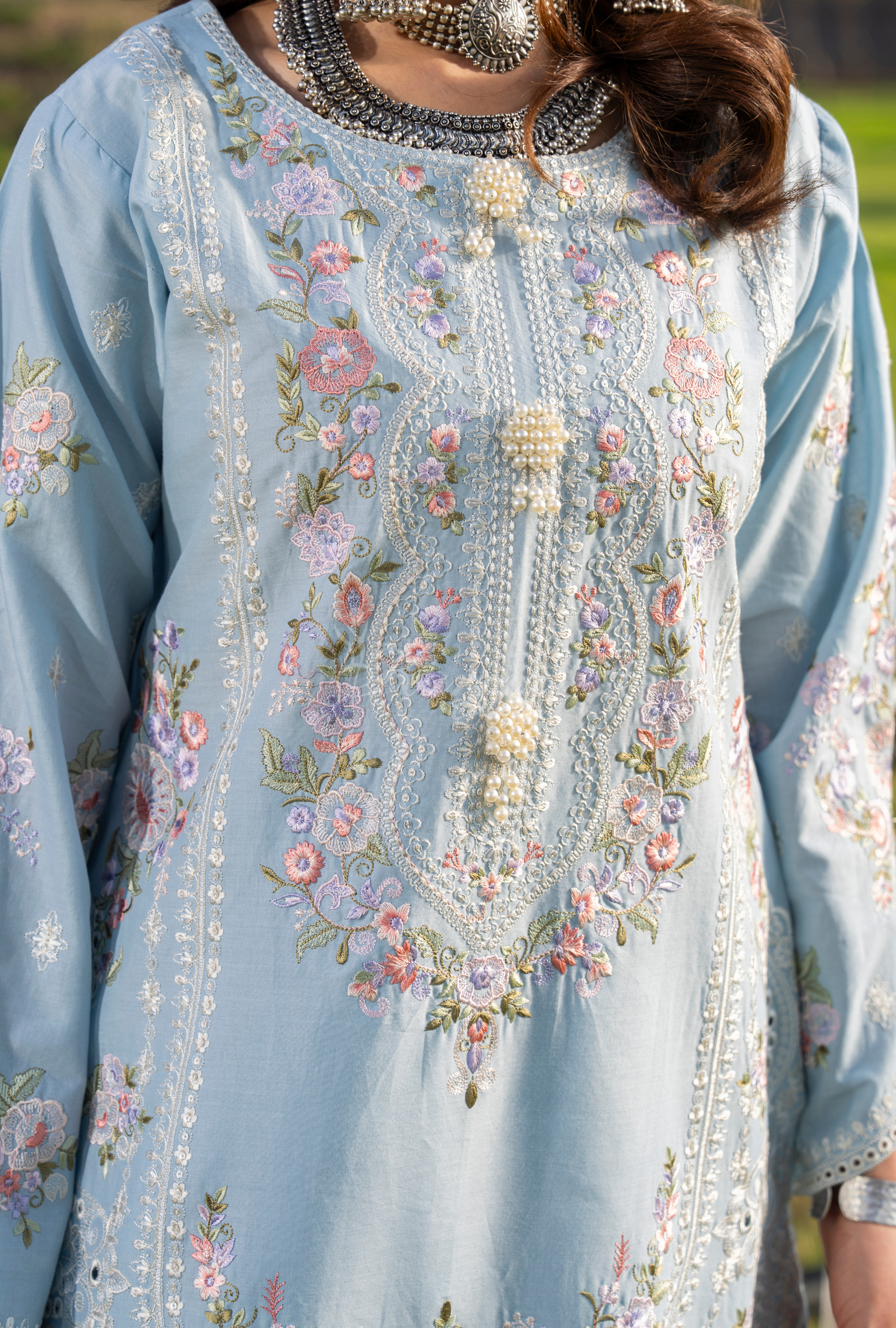 Border and Chalk (Pearls Button on Neckline)