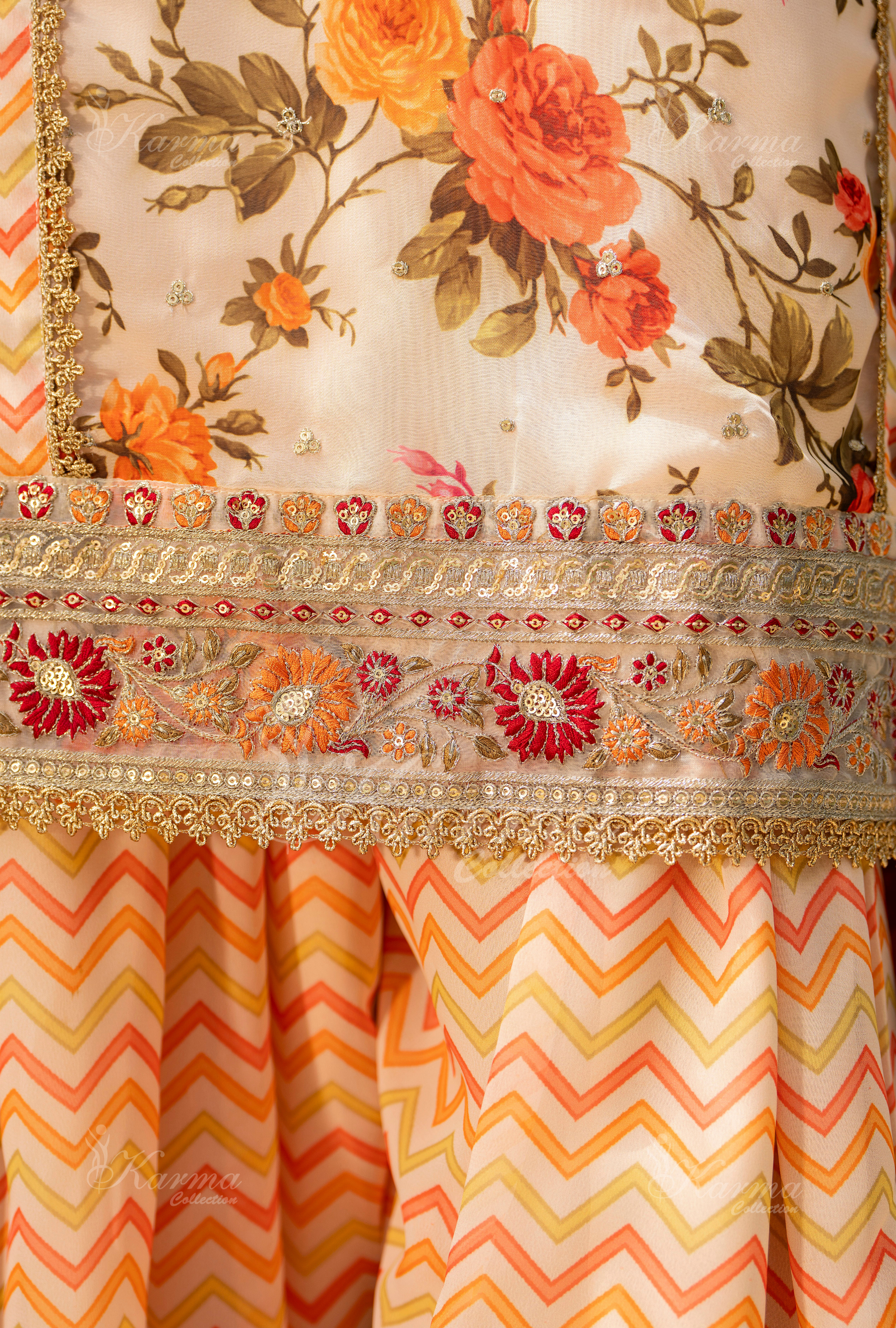 Printed Georgette Shirt with Multi Thread Embroidery and Tilla work